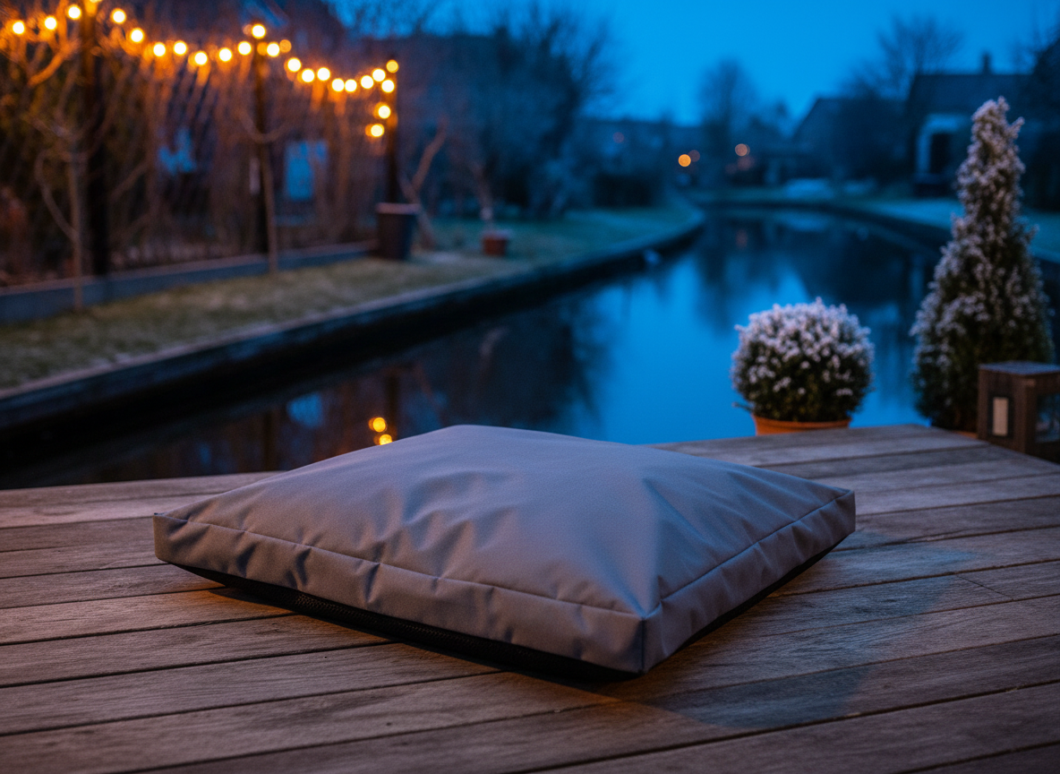 Ons premium buiten hondenkussen geeft jouw hond een zachte, ondersteunende plek – ook op het terras of in de tuin.